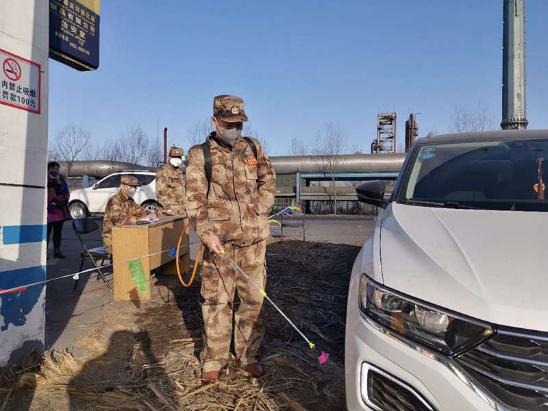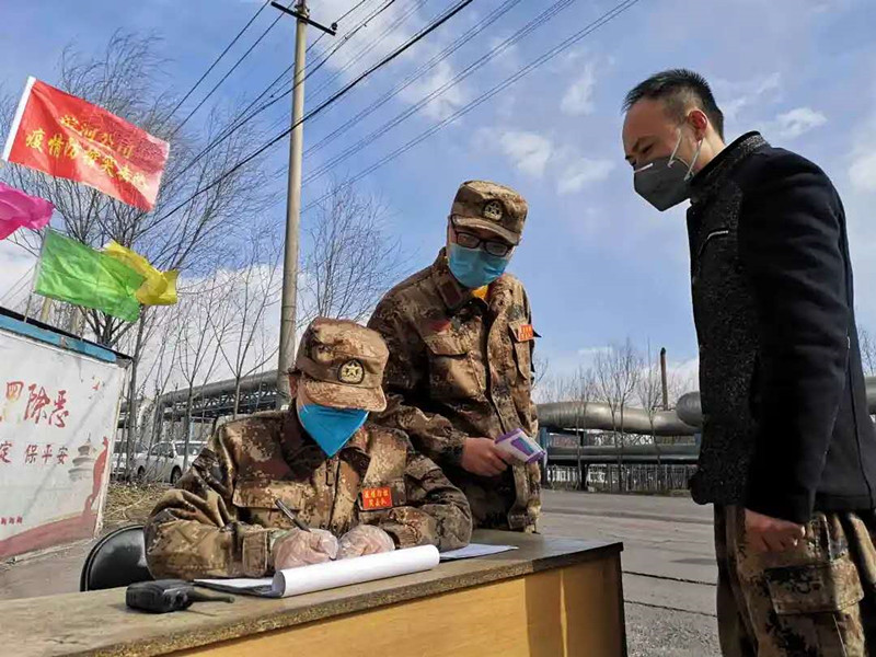 “請靠邊停車,我們需要給車輛消毒,請您下車做詳細登記并測量體溫?!?1點半不是上下班時間,雖然偶有人車進出,但郗余亮?xí)r刻堅守在刺骨的寒風(fēng)中,檢查過往人員和車輛,嚴格執(zhí)行公司對新冠肺炎疫情防控的各項要求?!耙咔楫?dāng)前,我作為公司員工,又是民兵,有責(zé)任也有義務(wù)沖鋒在前保護全廠員工和企業(yè)的安全,為了早日戰(zhàn)勝疫情,再苦再累我都能克服。”郗余亮說。